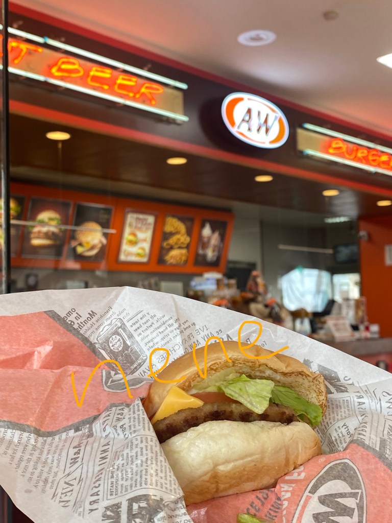 A&Wの名物といえば、ルートビアROOT BEER!アルコールは含まれておらず、約14種類以上のハーブを原料としたドリンクです。独特の風味ですが、バーガーとの相性は抜群で飲めば飲むほどクセになる!米国本社より原料を輸入し、各店舗にてサーバーから出来立てを提供しているとのこと。こだわりですね。ルートビアは全店で毎日おかわり無料!筆者は現在のところ1杯です。